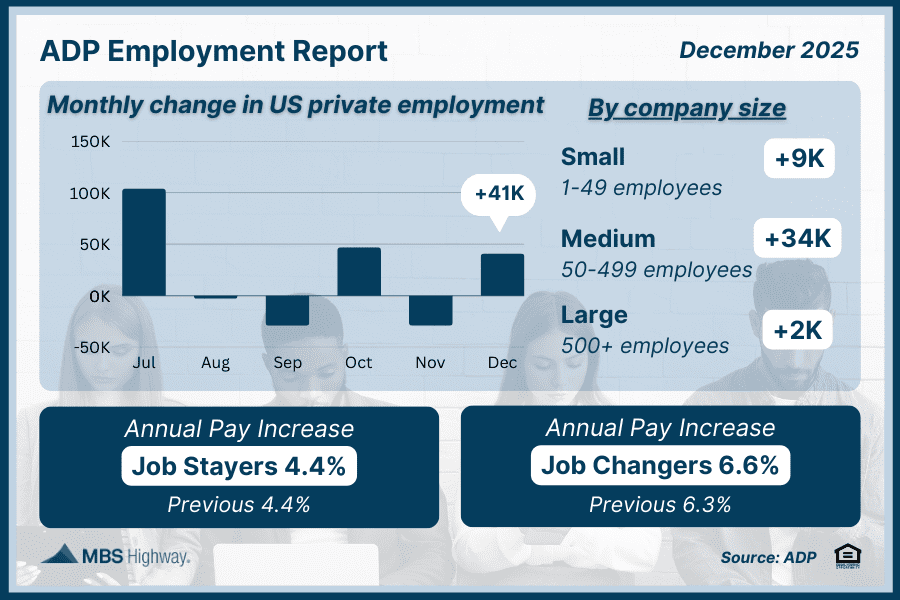 According to ADP, the private sector added 41,000 jobs in December, recovering from a 29,000-job loss in November — but still missing expectations.