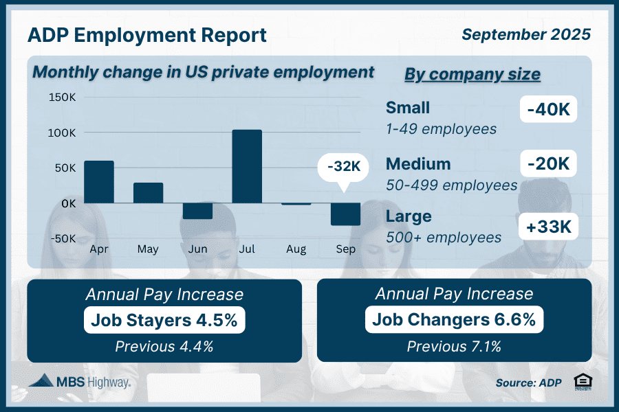 According to ADP, the private sector lost 32,000 jobs in September, a sharp contrast from expectations of a 50,000-job gain. August’s data was also revised from a modest gain to a small loss, continuing a recent pattern of slower growth.